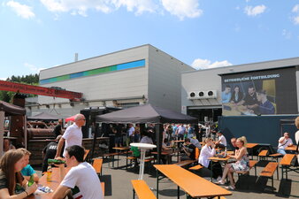 Natürlich ging es dabei nicht nur um Theorie – die Jugendlichen durften unter anderem selbst einen Würfel drehen und fräsen und ein Traktormodell montieren. Im Zentrum standen die Ausbildungsberufe Zerspanungs-, Industrie-, Werkzeugmechaniker, Verfahrenstechnologe, Mechatroniker, Industriekaufleute und Fachinformatiker sowie die dualen Studiengänge. Zusätzlich konnten sich die Besucher auf einer LED-Wand im Freien mit Videos über die ausbildungsbegleitenden Aktivitäten wie etwa jährliche Seminare, E-Learning, innerbetrieblichen Englischunterricht und vieles mehr informieren. Das Highlight war eine Tombola mit mehr als 20 Gewinnen und die Foodtrucks mit Burgern und Crêpes zur Verpflegung der Besucher.